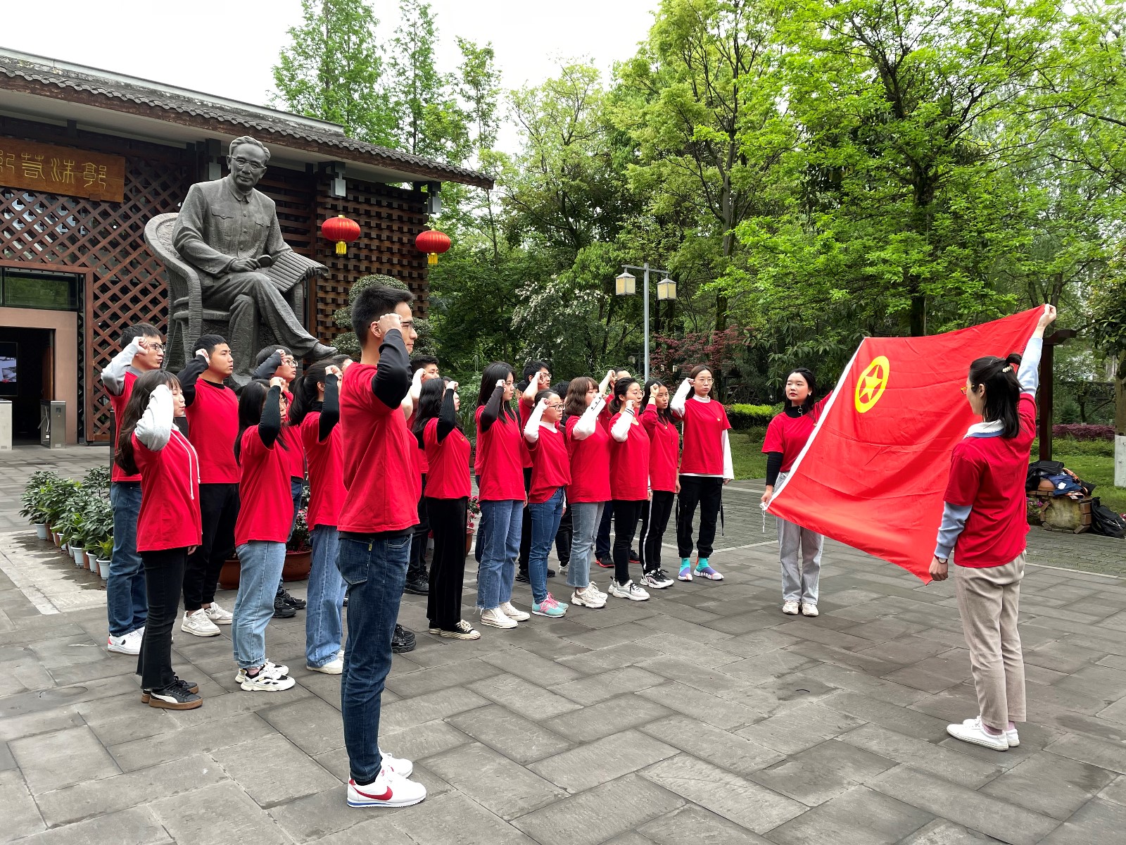 3月20日早上,公司青年、團(tuán)員們?cè)诠緺I(yíng)銷(xiāo)總監(jiān)、團(tuán)委書(shū)記周全的帶領(lǐng)下,在故居工作人員的指引下,沿著郭沫若故居的題匾題簽長(zhǎng)廊—統(tǒng)戰(zhàn)長(zhǎng)廊—紀(jì)念館—郭沫若銅像初心路線,認(rèn)真聆聽(tīng)了講解員對(duì)郭沫若遠(yuǎn)渡重洋的求學(xué)報(bào)國(guó)歷程、棄醫(yī)從文、投身文化抗日戰(zhàn)場(chǎng)、為爭(zhēng)取獨(dú)立、呼吁民主的崢嶸歲月的介紹,觀看了陳列柜里的文學(xué)著作、抗日戰(zhàn)爭(zhēng)時(shí)期的烽火照片及建國(guó)以后的書(shū)法作品,近距離了解了五四革命先驅(qū)者、一代文學(xué)偉人的奮斗故事及其奉獻(xiàn)祖國(guó)的光輝一生。最后,全體青年團(tuán)員在郭沫若雕像前面對(duì)團(tuán)旗重溫入團(tuán)誓詞,擲地有聲的誓詞表現(xiàn)出公司青年、團(tuán)員不忘初心跟黨走的決心。隨后在沙灣農(nóng)家小院,公司青年、團(tuán)員們相繼開(kāi)展了紀(jì)念建黨100周年詩(shī)歌朗誦比賽、黨史知識(shí)100題搶答競(jìng)賽以及紅歌對(duì)對(duì)碰比賽,通過(guò)競(jìng)賽,以賽促學(xué),引導(dǎo)和激發(fā)青年、團(tuán)員重溫黨的發(fā)展壯大史,唱響愛(ài)國(guó)歌曲,接受紅色教育洗禮。