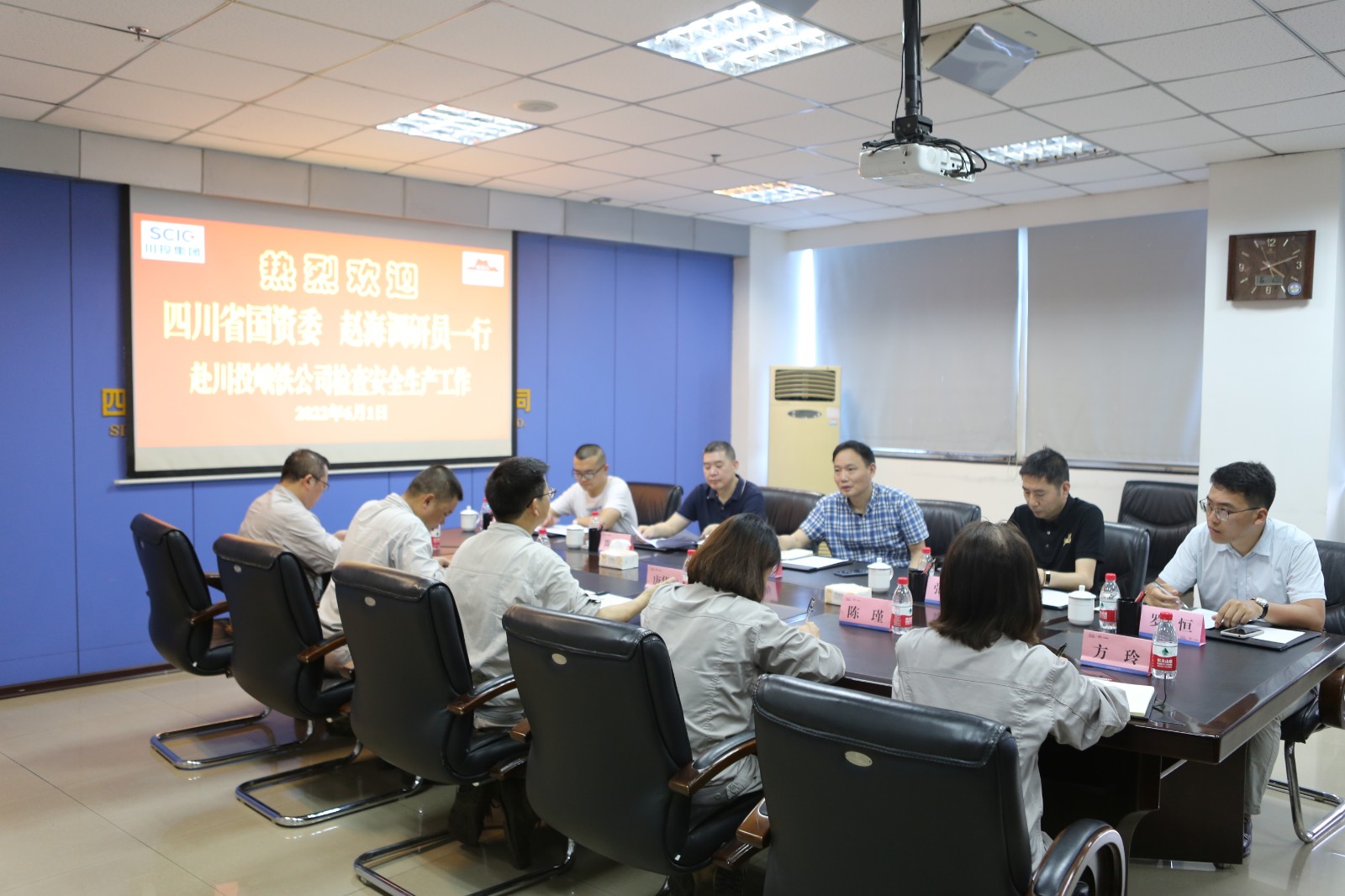 6月1日,四川省國資委社會(huì)責(zé)任處調(diào)研員趙海一行在川投集團(tuán)公司安全環(huán)保部陶世賢部長陪同下,到川投峨鐵公司檢查安全生產(chǎn)工作。公司黨委書記、董事長唐華應(yīng),黨委副書記、總經(jīng)理陳新龍等領(lǐng)導(dǎo)和部門負(fù)責(zé)人陪同檢查。
