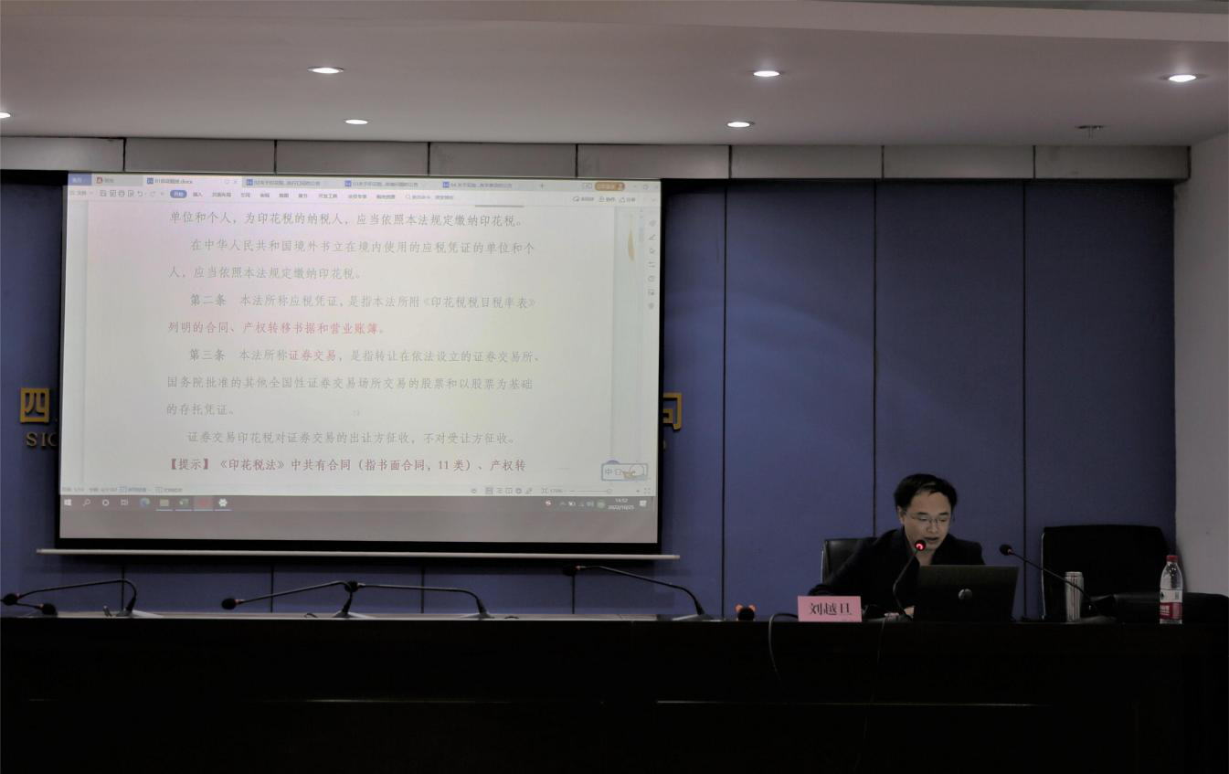 會上,劉越旦針對公司目前業(yè)務(wù)涉及內(nèi)容、遇到的難點以及當(dāng)前申報模式變化等相關(guān)問題,分別從法律條文、合同簽訂、印花稅申報等幾個方面講解了《印花稅法》,并結(jié)合公司實際業(yè)務(wù)及困難作出相應(yīng)指導(dǎo),對需要關(guān)注和完善的事項進(jìn)行了特別強(qiáng)調(diào)。同時就學(xué)員關(guān)心的問題進(jìn)行了現(xiàn)場答疑解惑。