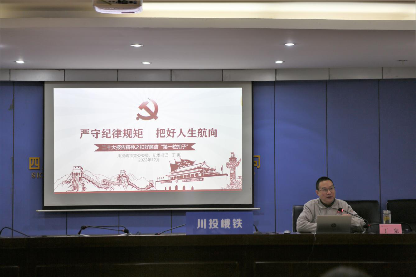 為深入學(xué)習(xí)宣傳貫徹黨的二十大精神,積極踐行習(xí)近平總書記對廣大青年提出的“立志做有理想、敢擔(dān)當(dāng)、能吃苦、肯奮斗的新時(shí)代好青年”的殷切希望,扣好年輕干部廉潔“第一??圩印?。12月13日上午,川投峨鐵公司黨委委員、紀(jì)委書記丁憲在1011會(huì)議室作題為“嚴(yán)守紀(jì)律規(guī)矩 把好人生航向”的廉潔黨課,公司團(tuán)員青年、黨員共計(jì)43人參會(huì)。