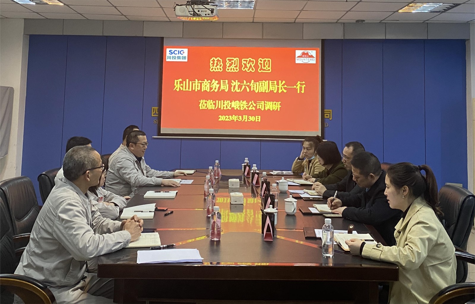 3月30日,樂山市商務局副局長沈六旬、峨眉山市商務局局長楊換榮等一行5人到川投峨鐵公司調(diào)研指導外貿(mào)工作。公司總經(jīng)理陳新龍、常務副總經(jīng)理李宏、總會計師方玲、營銷總監(jiān)周全等現(xiàn)場陪同調(diào)研。