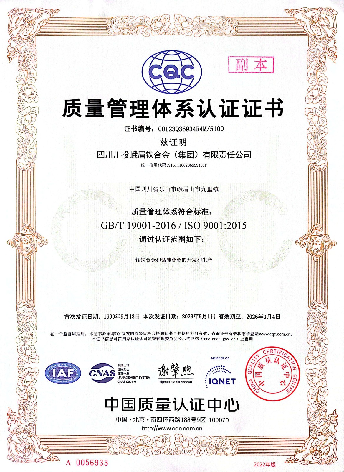 川投峨鐵公司高度重視本次認(rèn)證審核工作。為保證工作的順利推進(jìn),先后成立了內(nèi)部工作組,制訂了審核計(jì)劃,明確了相關(guān)任務(wù)責(zé)任。在各部門的認(rèn)真配合下,公司內(nèi)部審核工作一次性通過,按程序申請(qǐng)了最終外部評(píng)定審核。中國檢驗(yàn)認(rèn)證集團(tuán)四川有限公司專業(yè)小組審核檢查后,一致認(rèn)為:川投峨鐵公司質(zhì)量管理體系較為完善,質(zhì)量方針和目標(biāo)符合標(biāo)準(zhǔn)要求和公司實(shí)際情況。質(zhì)量管理體系資料及審核報(bào)告經(jīng)評(píng)審中心評(píng)審確定,推薦認(rèn)證保持川投峨鐵公司的ISO9001質(zhì)量管理體系有效。