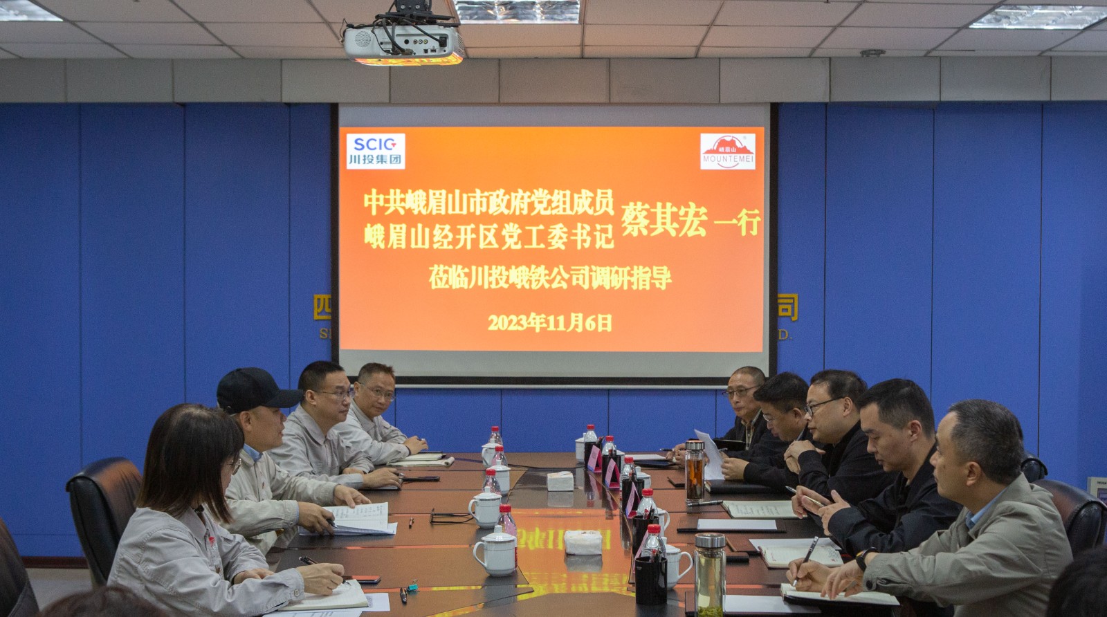 11月6日,峨眉山市政府黨組成員、峨眉山經(jīng)開區(qū)黨工委書記蔡其宏帶隊(duì)到川投峨鐵公司調(diào)研。公司黨委副書記、總經(jīng)理陳新龍陪同調(diào)研。