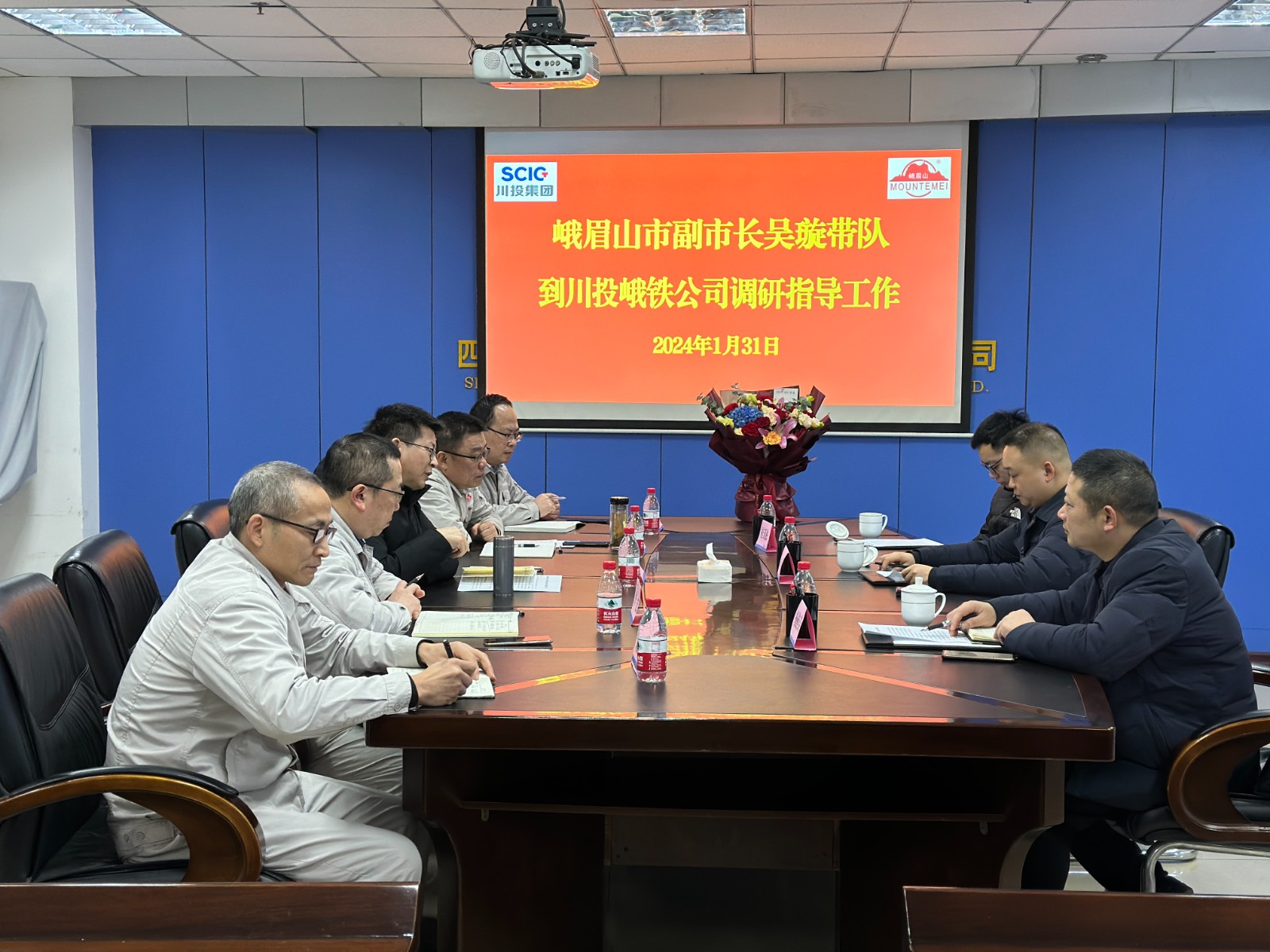 1月31日,峨眉山市副市長(zhǎng)吳璇帶領(lǐng)市商務(wù)局局長(zhǎng)楊換榮等一行3人到川投峨鐵公司調(diào)研指導(dǎo)工作。公司黨委書記、董事長(zhǎng)唐華應(yīng)陪同調(diào)研并匯報(bào)工作。