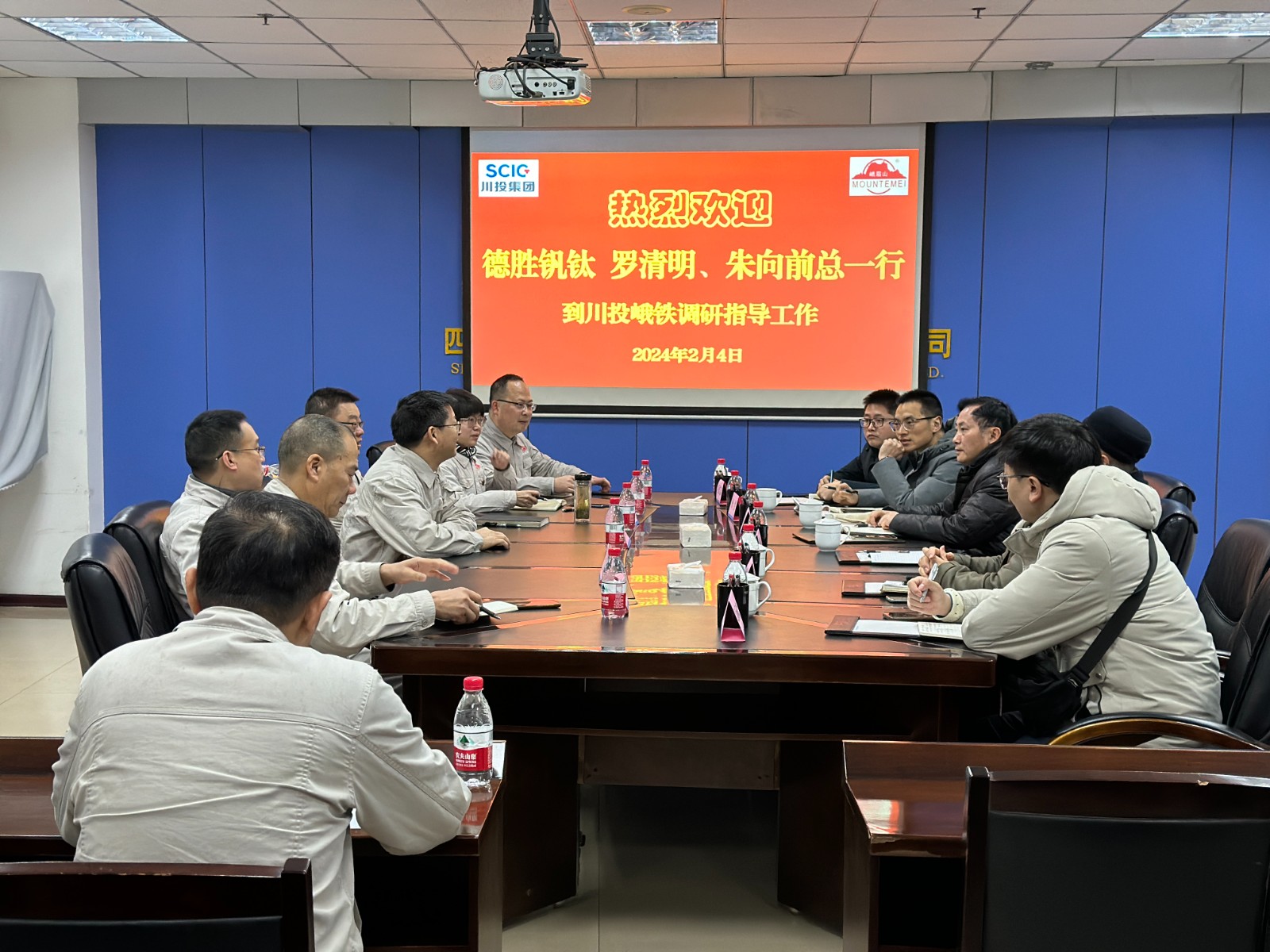 2月4日,四川德勝集團釩鈦有限公司技術(shù)中心主任羅清明、技術(shù)顧問朱向前一行5人到川投峨鐵公司調(diào)研交流。公司黨委書記、董事長唐華應(yīng)陪同調(diào)研。