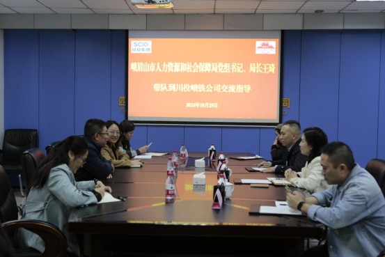 10月28日,峨眉山市人力資源和社會保障局黨組書記、局長王琦一行4人到公司交流指導。川投峨鐵公司黨委副書記、總經理陳新龍,黨委副書記、工會主席陳瑾在908會議室與到訪人員進行了交流座談。
