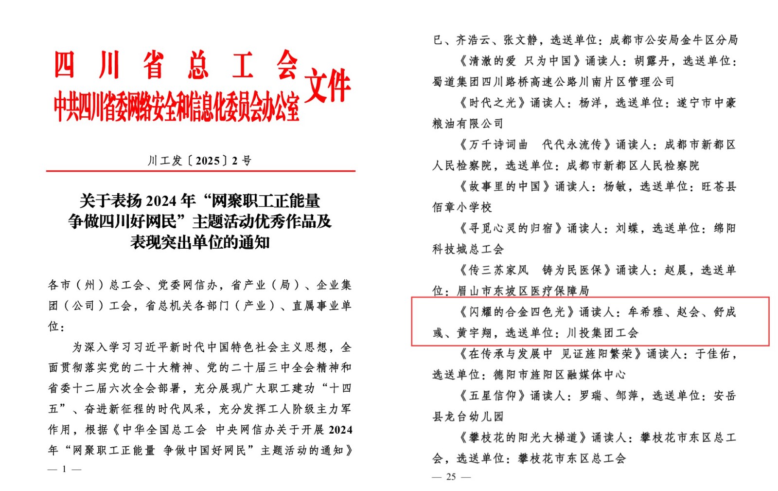 川投峨鐵公司持續(xù)強(qiáng)化黨建引領(lǐng),推進(jìn)黨建與生產(chǎn)經(jīng)營深度融合,開年以來,公司黨委被評為樂山市2024年度國有企業(yè)基層黨建工作先進(jìn)單位,以黨建品牌創(chuàng)作的誦讀作品《閃耀的合金四色光》獲評四川省總工會“網(wǎng)聚職工正能量 爭做四川好網(wǎng)民”主題活動優(yōu)秀作品。項(xiàng)目部以“起步即沖刺”的狀態(tài),錨定技改升級項(xiàng)目總目標(biāo),加快與相關(guān)技術(shù)單位的溝通交流,助推公司技改項(xiàng)目“早開工、快建設(shè)”。進(jìn)出口公司把脈市場動向,踩準(zhǔn)“節(jié)奏”實(shí)現(xiàn)錳礦貿(mào)易創(chuàng)效538.7348萬元,為“開門紅”奠定良好基礎(chǔ)。