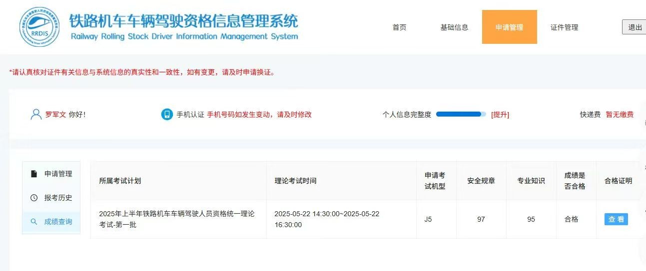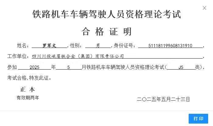 國(guó)家鐵路局鐵路機(jī)車車輛駕駛?cè)藛T資格考試作為國(guó)家級(jí)行業(yè)考試,由國(guó)家鐵路局統(tǒng)一組織。在公司的統(tǒng)籌安排和支持下,今年4至5月,該員工全脫產(chǎn)參與了中鐵成都局組織的鐵路機(jī)車車輛駕駛?cè)藛T全封閉式集中培訓(xùn)。培訓(xùn)時(shí)長(zhǎng)超過40天,在高強(qiáng)度的學(xué)習(xí)任務(wù)與緊張的培訓(xùn)節(jié)奏下,該員工憑借毅力與努力,以扎實(shí)的理論基礎(chǔ)取得了優(yōu)異成績(jī),理論考試兩門科目《安全規(guī)章》和《專業(yè)知識(shí)》分別拿下97分和95分的高分,綜合評(píng)定成績(jī)合格。