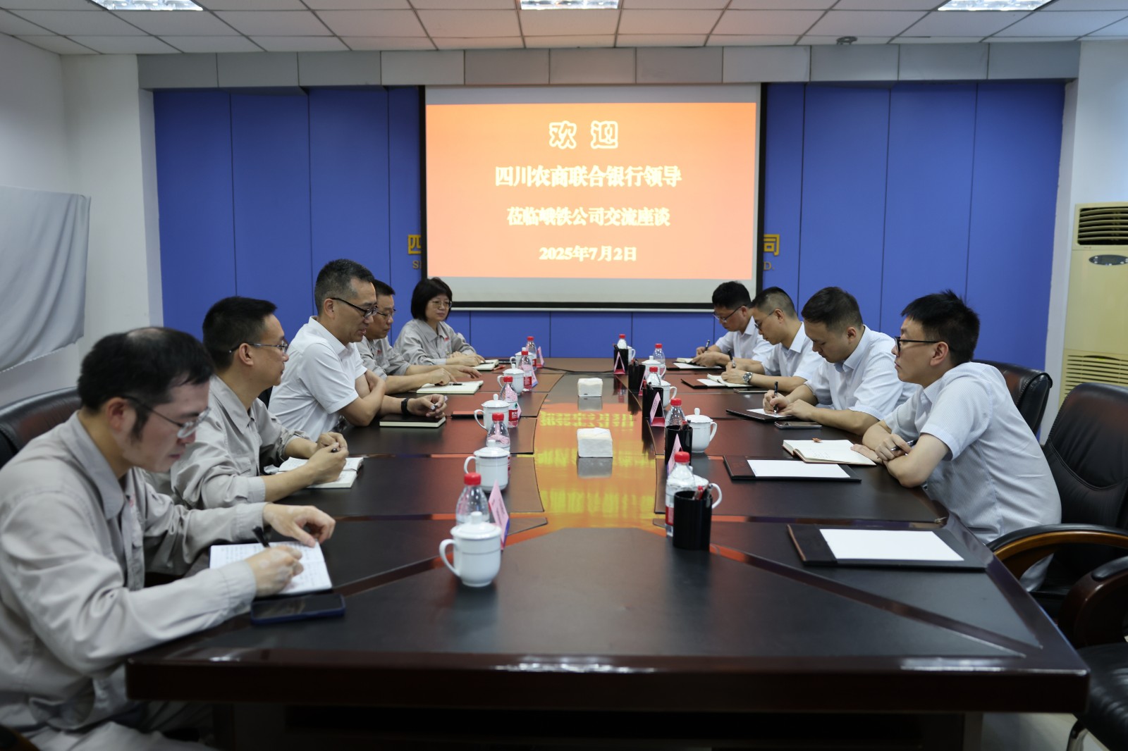 在座談會上,李勝章代表峨鐵公司感謝四川農(nóng)商銀行長期以來的支持,并就公司未來的戰(zhàn)略規(guī)劃進(jìn)行了介紹,強(qiáng)調(diào)銀企合作的戰(zhàn)略價(jià)值。陳新龍系統(tǒng)介紹了公司經(jīng)營現(xiàn)狀與戰(zhàn)略規(guī)劃,結(jié)合運(yùn)營數(shù)據(jù)重點(diǎn)闡釋貸款項(xiàng)目的預(yù)期經(jīng)濟(jì)效益。考察組高度肯定公司項(xiàng)目建設(shè)成效,表示此次考察為貸款審批提供了重要依據(jù)。雙方將持續(xù)深化協(xié)作,在支持企業(yè)發(fā)展、服務(wù)地方經(jīng)濟(jì)中實(shí)現(xiàn)互利共贏。