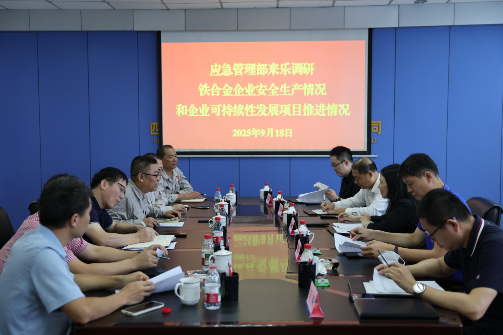 9月18日,應(yīng)急管理部執(zhí)法工貿(mào)局二級巡視員胡福靜一行,到川投峨鐵公司調(diào)研鐵合金企業(yè)安全生產(chǎn)和企業(yè)可持續(xù)發(fā)展項目推進(jìn)情況。樂山市應(yīng)急管理局副局長胥朝彪、峨眉山市應(yīng)急管理局局長張陸清及相關(guān)人員陪同調(diào)研。