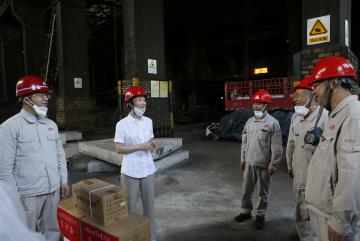 2018年8月24日川投集團公司工會副主席、機關(guān)黨委書記白翠紅,黨群工作部副部長張鵬舉一行蒞臨公司生產(chǎn)一線送清涼。